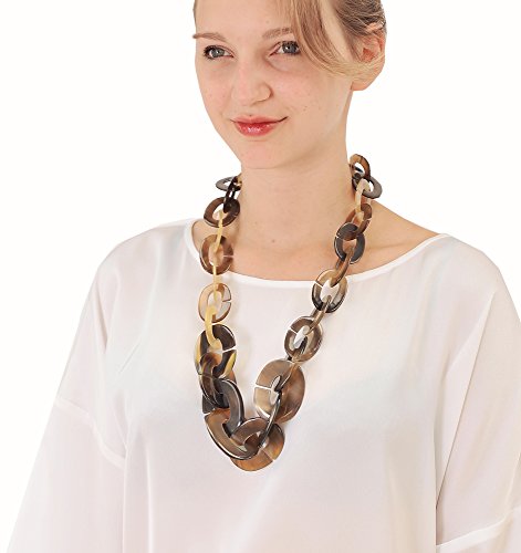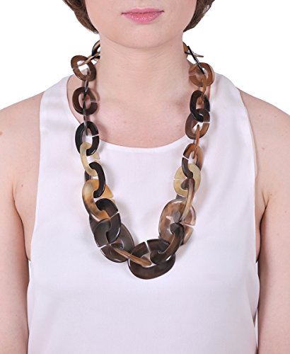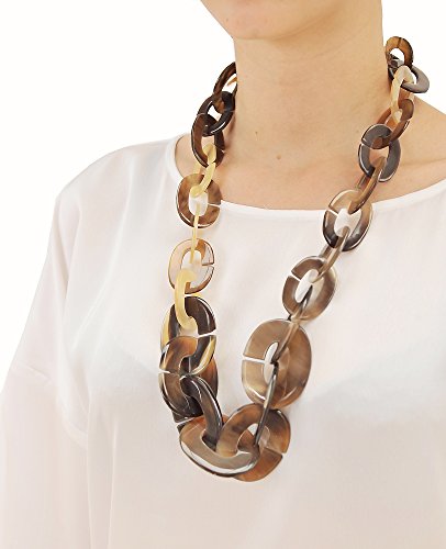 Long chain necklace designed by Marycrafts team, 100% handmade of buffalo horn, highly finished. Length approximately 31".