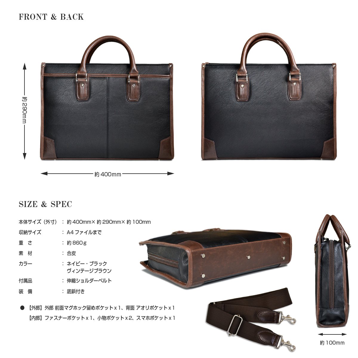 Product: Men's business bag (large opening type)