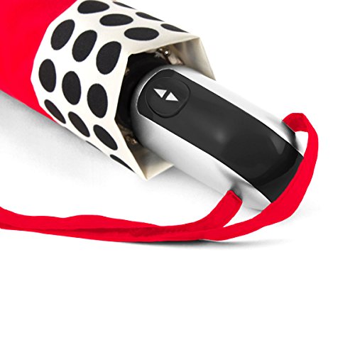 -. Brand : ShedRain -. Color : red -. Department : womens -. EAN : 0091806216894 -. Feature : 100% Polyester / 42-inch arc (106.7 cm) / 3 secton shaft, automatic open and close / Close length: 11.25 inches (28.6 cm) / Steel shaft and ribs Self fabric wrist strap and case -. Model : 2104 -. PackageQuantity : 1 -. ProductGroup : Apparel -. ProductTypeName : LUGGAGE -. Size : small -. Title : ShedRain Compact Folding Auto Open And Close Umbrella RED SPOT ON -. UPC : 091806216894
