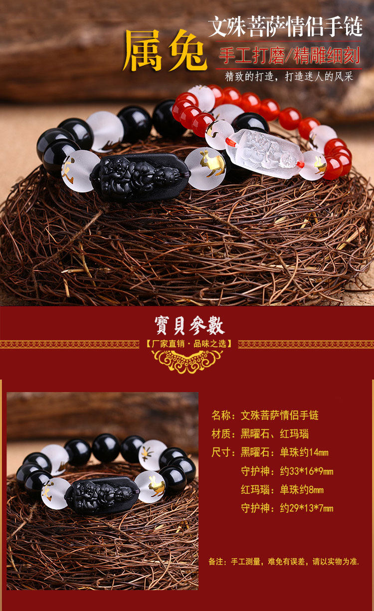 属兔本命佛文殊菩萨五行合运岁星保兔生肖兔三合太岁华盖金轮手链