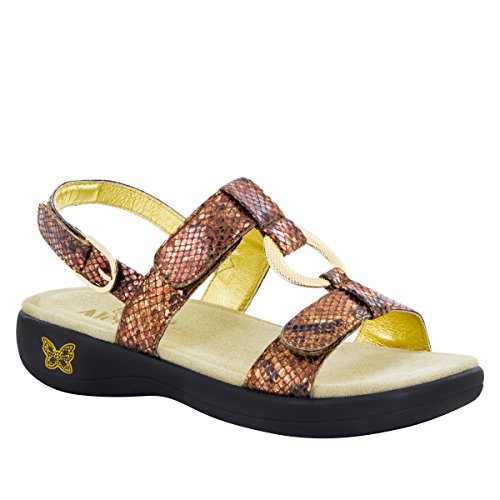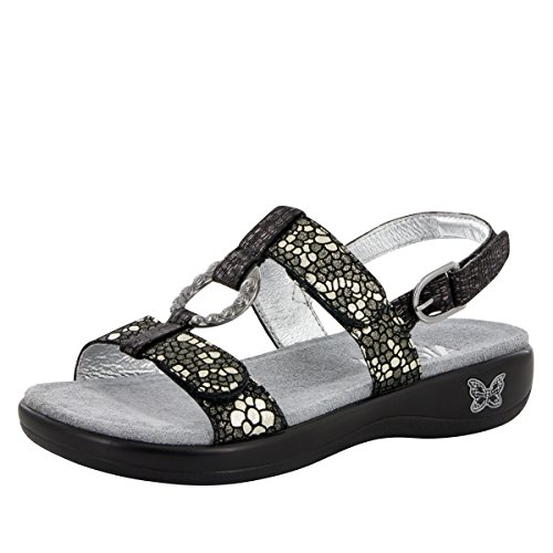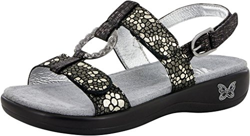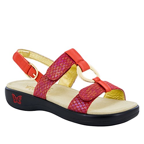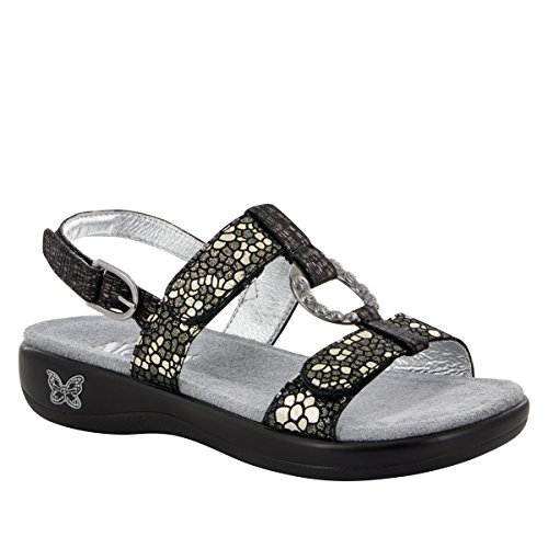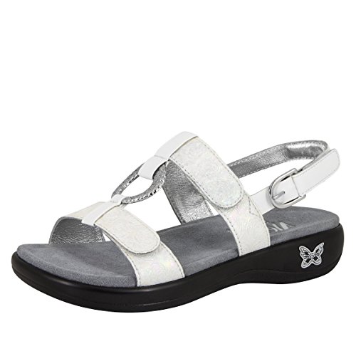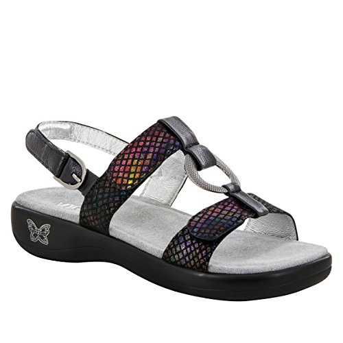 Studio : Alegria Footwear Publisher : Alegria Footwear Binding : Shoes Product Description Give you feet the happiness they deserve when you slip into the new Alegria Julie this summer! Crafted from a premium leather upper, these gorgeous sandals boast of an adjustable instep strap with a hook-and-loop closure for a more secure and precise fit. Boasting of a memory foam cushioned footbed for spectacular and unparalleled all-day comfort, they rest on top of a slip-resistant rubber outsole that will deliver outstanding traction, grip and stability on a wide variety of terrains so you can confidently go about your day in ease and comfort. Perfect with summer dresses and skirts, look like a million dollars this summer with the new Alegria Julie! 0