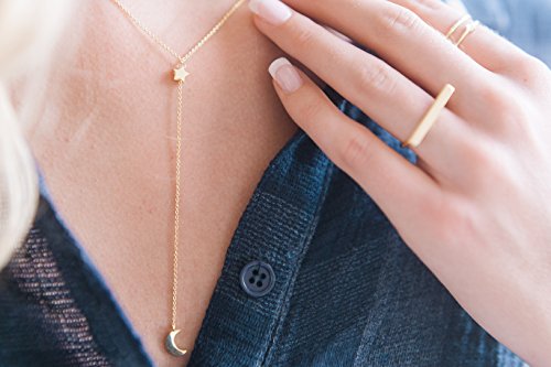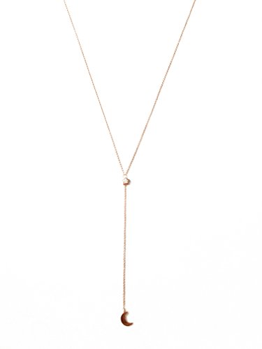 A tiny moon hangs on a delicate, crystallized star upon this lariat's drop. An understated, gorgeous, delicate piece.