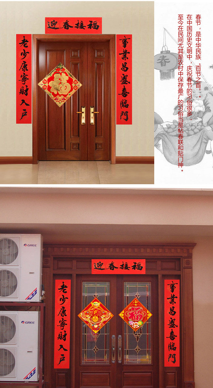 Spring paste couplets, beautiful appearance of the atmosphere of this beautiful couplets, meaning beautiful. Can play in the home stickers entrance doors of the town house evil fortune role, if the "feng shui door blessing" at the same time use, the effect is even more powerful.