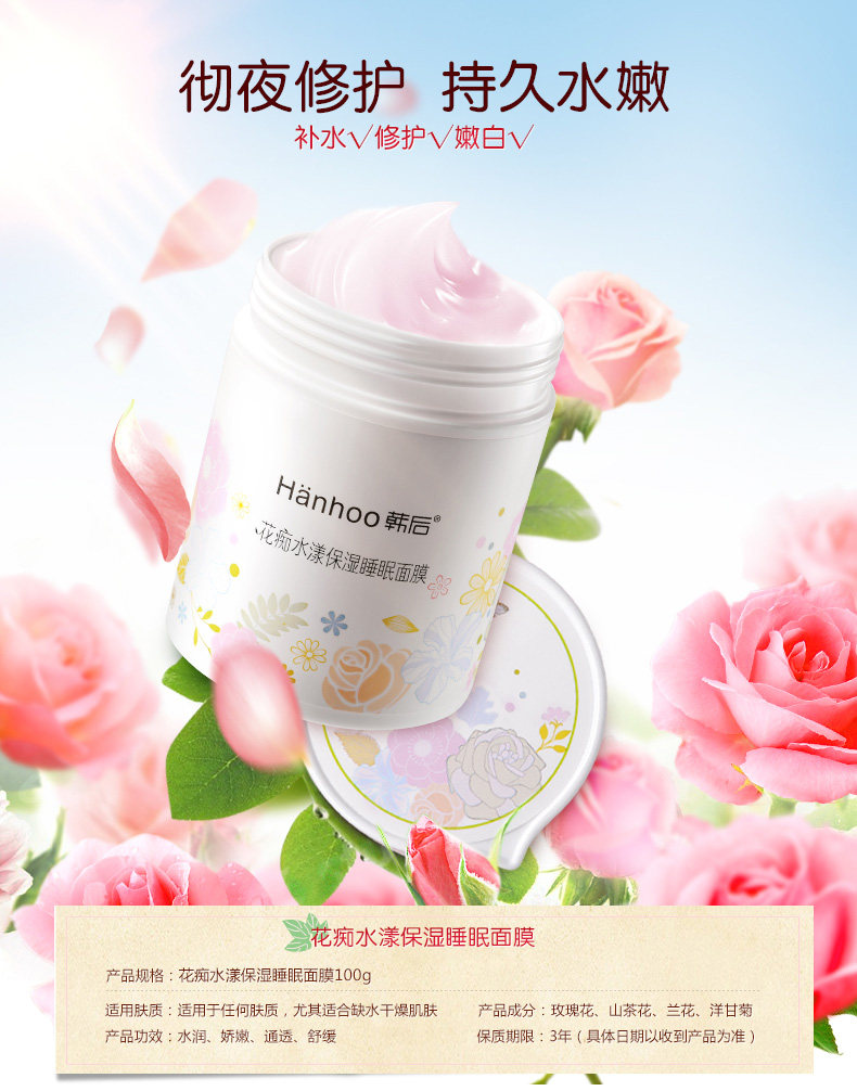 韩后面膜 花痴水漾睡眠面膜100g 睡眠免洗式滋润保湿夜间修复护肤