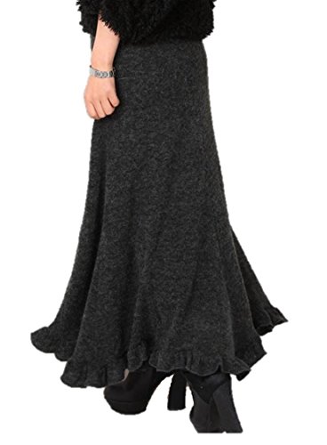 -. Feature : ソフトな動きのある縦長スタイルなので、脚長・細見え効果の美シルエット。 / マキシ丈の裾フリルは歩くたに揺れて、大人可愛いらしさを演出。 / 多少透け感がありますので、レギンスやタイツなどと合せて着用頂くことをお勧めします。 / カラー : ダークグレー   サイズ : M、L / 素材 : 混紡ウール