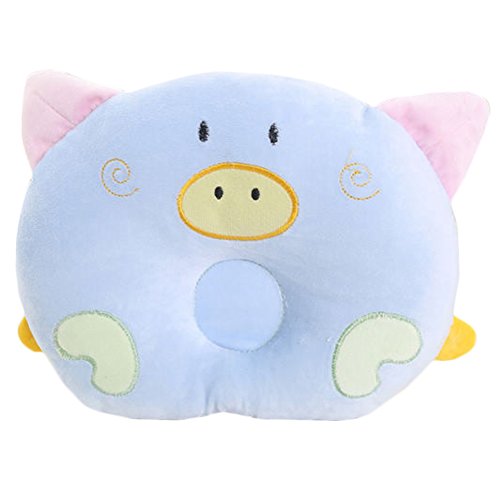 -. Title : Adorable Soft Newborn Baby Anti-roll Pillow Prevent Flat Head-Lovely Pig,Blue