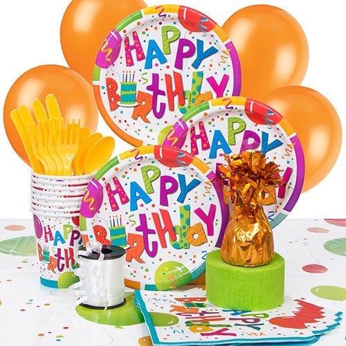 Studio : Unique Publisher : Unique Binding : Kitchen Product Description Give the birthday boy or girl an extra special celebration with this Jamboree Birthday Party Supplies Kit. Covered with multi-colored balloons and confetti, the paper tableware included in this kit will make birthday cake and ice cream look even more scrumptious. Arrange the bright balloons and streamers around the room to create a fun and festive space for any kids birthday party.
