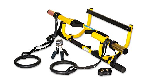 • Includes Multi Grip Barbell that transforms into Multi Grip Elevated Pull Up Bar, Numbered Gymnastic Rings, Olympic Barbell Clips/Collar. Do not compare this to the quality or function of any doorway pull up bar because Mega Bar is so much more and exceptionally better than any Iron Gym.
