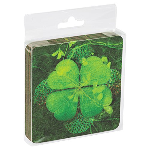 Tree-Free Greetings Set Of 4 Cork-Backed Coasters, 3.75 x 3.75 Inches, Four Leaf Clover Themed Elena Ray Art (16150)