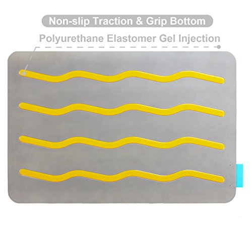 SAFE: Non-toxic, phthalate free . Waterproof surface and advanced beveled edge design helps prevent slipping and tripping. Special yellow PU elastomer anti slip strip bottom keeps your mat firmly in one place.