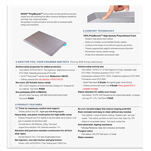 ANTI FATIGUE commercial grade thickness with just the right elasticity, stability work as a great back and feet saver, provide superior support over long periods of time. Surely make standing in the kitchen easier,like standing on a cloud.