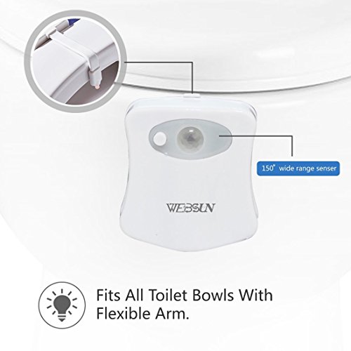 Motion Activated Toilet Night light, 2 Pack WEBSUN 16 Color Changing LED Toilet Seat Light Motion Sensor Toilet Bowl Light