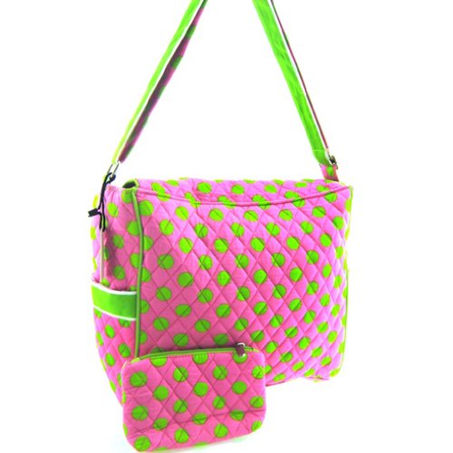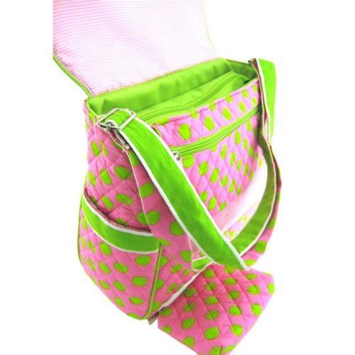 - Title : Cute! Quilted Large Cross Body Messenger Bag or Shoulder Purse Diaper or School Bag (Pink/Green)