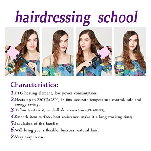 Hair Curling Iron Curling Wands Hair Curler Tourmaline Ceramic Hair Crimper Long Hair 3 Barrel Waver Instant Heat Hot Curler Deep Waver for Home/Travel/Salon Curlers with Temperature Control