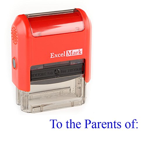 -. Binding : Office Product -. Brand : ExcelMark -. Color : Blue -. Feature : Self-Inking Stamp / Red stamp mount with a clear base to easily align impressions / Features a two-color (Red/Blue) ink pad that doubles the number of impressions and the useful life of the pad / Thousands of impressions before re-inking is necessary / Impression Area: 1/2" x 1/1/2" -. Label : DiscountRubberStamps -. Manufacturer : DiscountRubberStamps -. Model : To the Parents of - 55097 -. MPN : 55097 -. PackageQuantity : 1 -. PartNumber : 55097 -. ProductGroup : Office Product -. ProductTypeName : OFFICE_PRODUCTS -. Publisher : DiscountRubberStamps -. Studio : DiscountRubberStamps -. Title : Teacher Stamps - To the Parents of (55097)