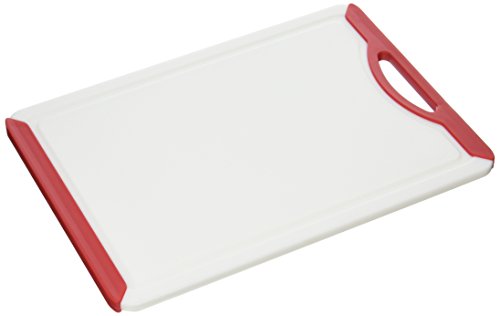 Commercial PP Cutting Board W/ Juice Grooves and TPR Soft Grip Nonslip Handles, NSF Approved and Antimicrobial Material, 13.75"x10"x3/8"