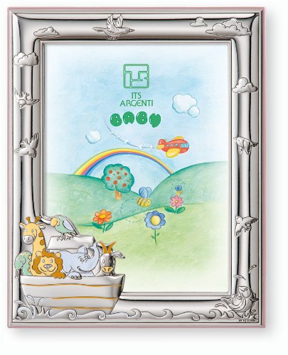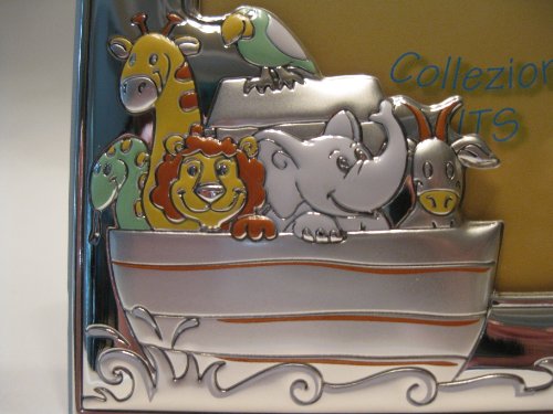 This beautiful frame is made of sterling silver featuring the ark, lion, giraffe, elephant, bird are all inside the ark