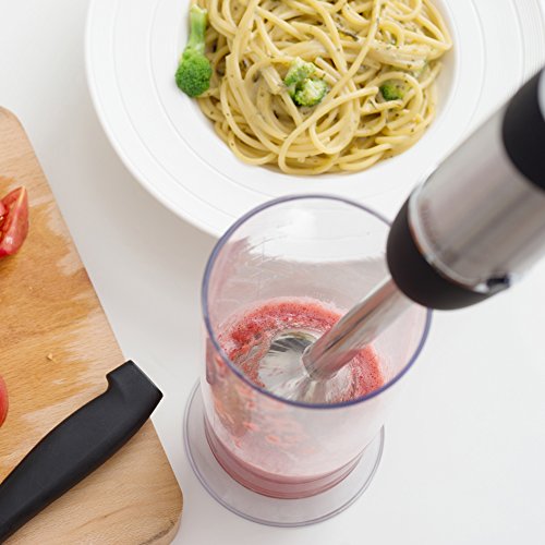 ★수초에 완성:이 핸드블랜더에는,850w의 독일제 모터가 탑재 되고 내리고, 파워와 내구성이보다 뛰어나 있습니다. 850w모터는,핸드블랜더서는 400W미만의블랜더와 비교2?3배의 속도로 식품을 처리합니다.야채,과일,너트,육분 마리,얼음을 단번에 찌부러뜨릴 수 있는 것입니다!6단계 스피드 조정 기능에 의해식재료에 의해 여러가지 용도로 사용으로 옵니다.