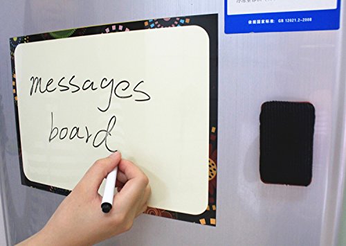 -. Feature : LOW ODOUR MAGNETIC MARKER-The marker comes with a small eraser and a small magnet on the cap that you can erase the wrong writing directly and attract on the refrigerator or message board, then you will not lose it. / DURABLE MAGNETIIC ERASER-The front is made of corduroy, which work well and no harm to the board, the backing rubber magnet for attraction on the fridge and whiteboard. In addition, suitable size is good for cleaning and bring you beautiful view feeling. / WIDELY USED- 0.3mm thick. You can make it as message board, graffiti board, Meno pad, to-do list, reminder of shopping list and other writing or drawing board. Just leave warm messages to families, or make a kindly reminder to colleagues at the office. / PERFECT GIFT-As it really useful and convenient that can be use many place, so it will be wonderful gift for parents, children, teachers, Kids and can be sent in memorable day, such birthday, anniversary, Christmas etc. / HIGH QUALITY MATERIAL-The magnetic message board is made of polymer materials, rubber, magnetic ferrite powder, PET film, which is flexible, durable and portable. The writing board is self magnetic and can be attract to the fridge and other ferrous metal surfacre. It processed with special surface treatment technic so that it is dry erased and can be wipe up cleanly after 30 days. And the rubber material is high quality and compliance with environmental standards, and safe for daily life.