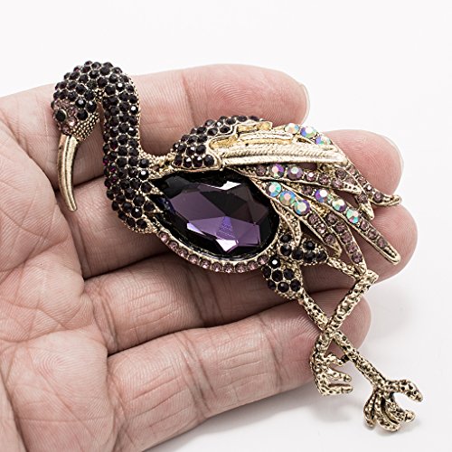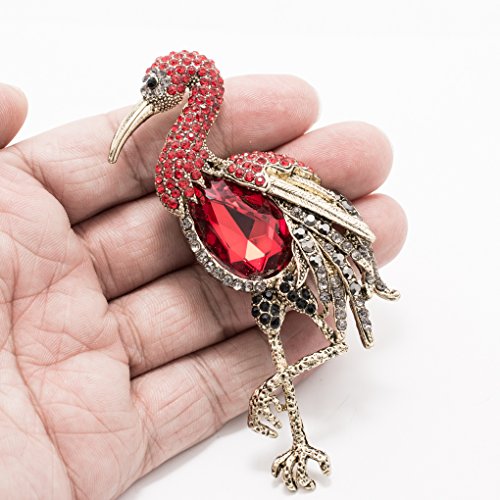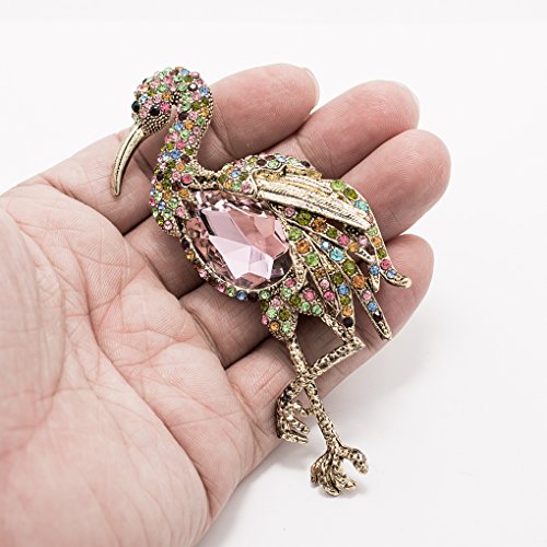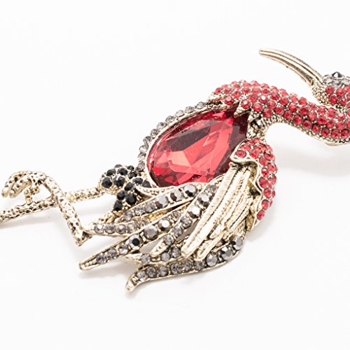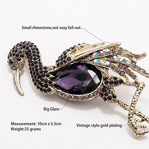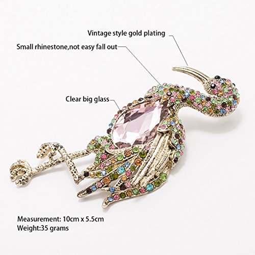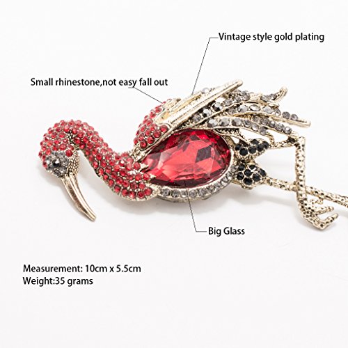 -. Feature : Rhinestone& Crystals Flamingo Brooch,Women pin / Made with rhinestone,Vintage style plating / The size is 3.9 inches x 2.1 inches.
