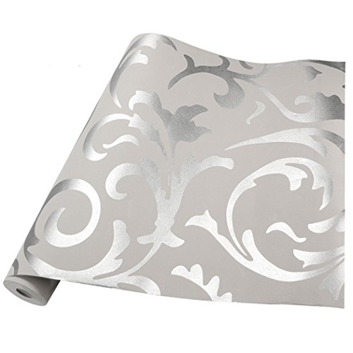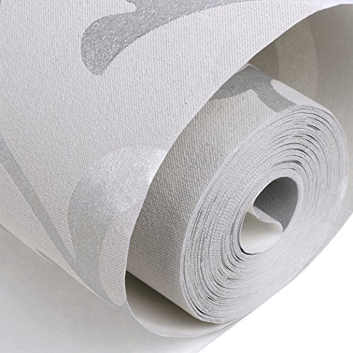 Domtie 10-Meter Non-woven Wallpaper with 3-D Flower Motifs Water-resistant Anti-fungal Home Decoration (Metal Silver)