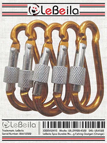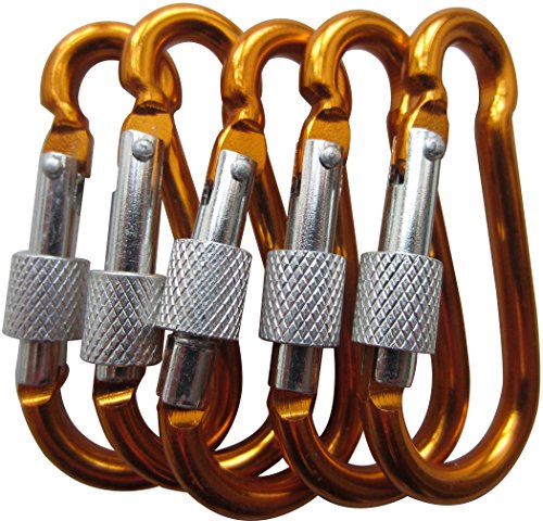 LeBeila 5pcs Durable Aluminum Carabiner Keychain Screw Locking Climbing Hooks Clip for Hiking Fishing Gadget (Orange)