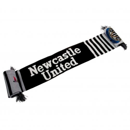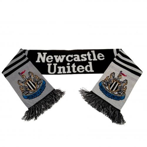The scarf features the Newcastle United club crest on far end each side and Newcastle United FC stencil styled text logo in the centre