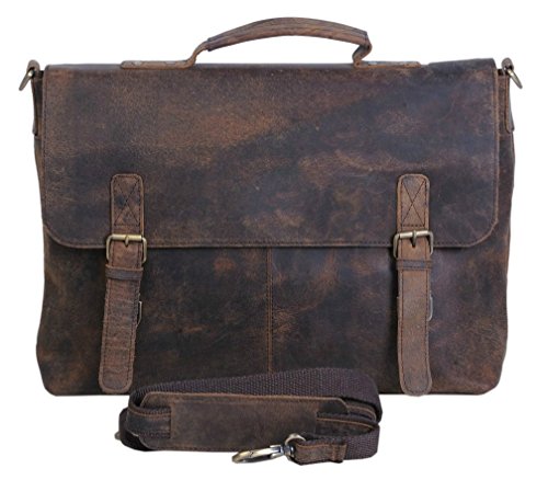 -. Feature : Made from the finest Hunter buffalo leather and lined with high quality canvas this bag is hand crafted by artisans working with leather for decades / Rustic Vintage look which makes each bag unique ( just like the person who owns them ) Padded compartment for Laptop's ( fits upto 15" laptop / Macbook ) / Size: 15.5 "x 11" x 4" , Big front pocket to accommodate Ipad's files etc. Cards / phones and pen section inside , 1 external back zipper for convenience / Buckle closures underneath closure straps for easy access / Designed by koma Can be used as a laptop bag , leather messenger bag , leather briefcase , courier bag / backside zipper pocket and big compartment and best for 15 inch and 16 inch laptop office collage bag
