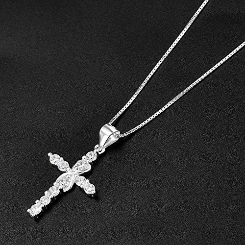 This is a sterling silver tiny petite cross with an entwined tiny cross. With simulated diamond insetting the cross. GOD is always there watching over us. This necklace beautifully represents faith and marriage