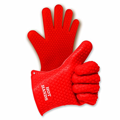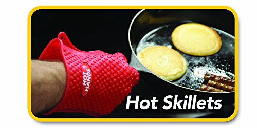 Studio : Ontel Publisher : Ontel Binding : Kitchen Product Description Hot Hands is the amazing new silicone glove that is tough enough for the hottest jobs. Now you can safely drain pasta, move sizzling casseroles, shred pulled pork, turn bacon, move oven racks, lift a turkey, or even flip burgers on the grill - all with Hot Hands - no spatula or tongs needed. The secret is in Hot Hands raised silicone grippers that safely draw heat away from hands. The five-finger non-slip grip makes cooking and grilling easier than ever. 0