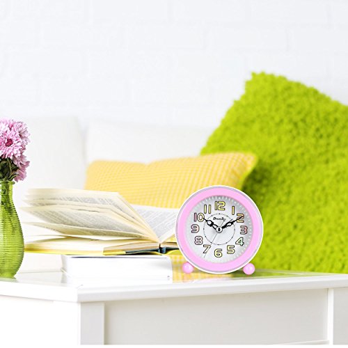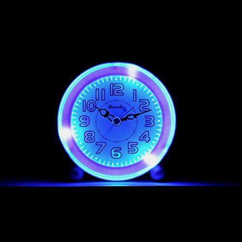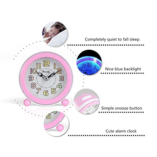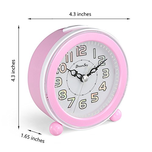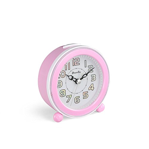 Studio : Amexs Publisher : Amexs Binding : Kitchen Product Description Super Quiet Clock -Classical alarm clock with quartz analog technology , 2 sweep hands , accurate quartz movement and super quiet , No ticking . Music Alarm With Snooze - Melody alarm wake you up naturally instead of typical "beep' sound, The sound loud enough, Do not worry oversleep -The snooze function will let you catch a little extra shuteye, It repeat every 5 minutes -Alarm switch ON/OFF button Clear ,Intuitive Number Display, Easy To Setup -Big and intuitive number display enable you see the time across the room. -Easy to set up ,One knob to set time and alarm time Built In backlight - Simply press the top button to activate for night viewing. -To save battery ,Every backlight will last 4 second and then off automatically. Small And Portable Size ,Made By High Quality Hard Plastic -Small size, battery operated great for use at home or on the go -Made by high quality hard plastic ,durable and long last use. Specifications Product size:4.3 x 4.3 x 1.65 inches Weight:6.35 ounces Power supply: 2*AA (1.5V)batteries (not included) Package 1* DreamSky alarm clock 1*User manual Care Replace batteries is needed while back light become weak 0