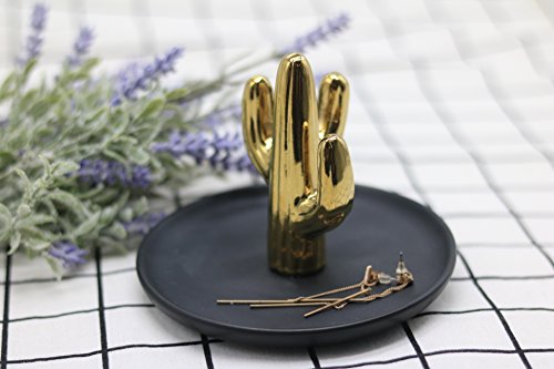 Purzest Ceramic Ring Holder Dish Home Decor Organizer,Cactus,Gold/Black