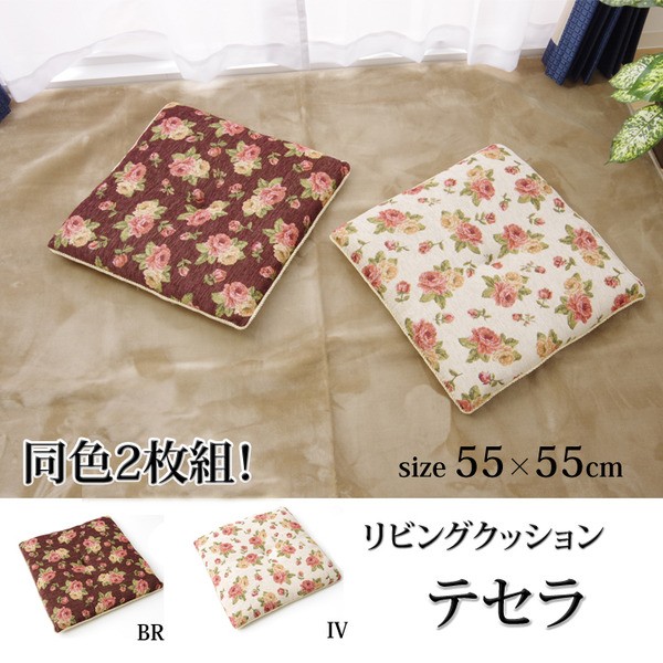 【商品名】クッション リビング エレガンス 花柄 『テセラ』 アイボリー 約55×55cm 2枚組