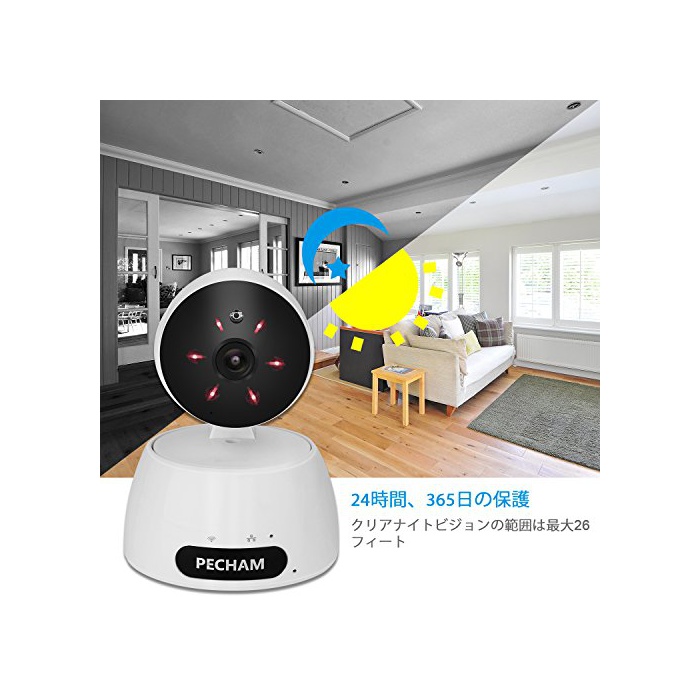 【HD고화질web카메라】PECHAM wifi 네트워크 카메라는 720P카메라를 탑재하고, 1280×720고화질을 제공 가능합니다.외출처에서《스마호》,타블렛 나와 간단하게가의 상황을 클리어에 확인에 옵니다.또한 적외선LED라이트가 6 개탑재하고, 암시 기능이 있고, 야간 감시 카메라로서도 완벽합니다.24시간 감시할 수 있어 언제라도 어디에서라도 안심감을 줘 줍니다.