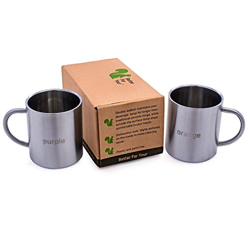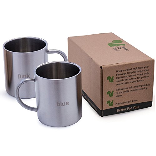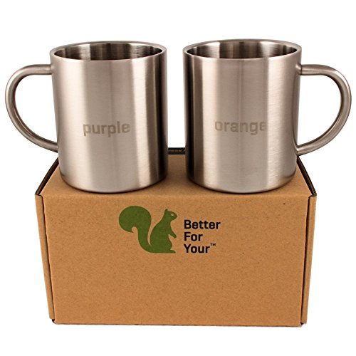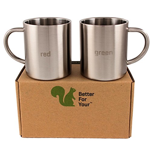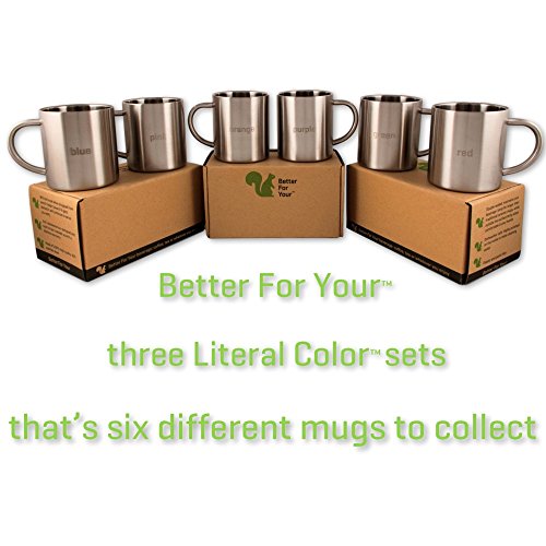 -. Brand : Better For Your -. Color : Silver -. Feature : KEEPS YOUR DRINK HOTTER FOR LONGER - Compared to a traditional ceramic mug / COMFORTABLE TEMPERATURE TO HOLD - Thanks to the double wall design / PICK A 'COLOR' - thanks to the laser 'Literal Color' words lasered onto each side of the mug / SET OF 2 THAT WILL LAST FOR DECADES - built to last shatter proof 100% 304 stainless steel so it will not rust / BETTER FOR THE ENVIRONMENT - plastic free, paint free, BPA Free & eco-friendly -. Label : Better For Your -. Manufacturer : Better For Your -. PackageQuantity : 2 -. ProductGroup : Kitchen -. ProductTypeName : KITCHEN -. Publisher : Better For Your -. Size : 13.5oz Total Capacity - 12oz Practical Capacity -. Studio : Better For Your -. Title : Stainless Steel Double Wall Coffee Mugs - Tea Cups Literal Color Range, Set of 2, Adult Size 13.5oz