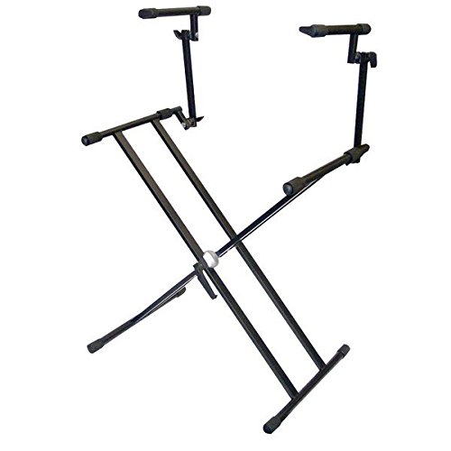-. Feature : Double x 2 tier steel braced heavy duty keyboard stand - secure-lock center clutch height adjustment system / For Use Of Keyboards and DJ Players - Adjustable From 39 1/4'' X 51 1/4'' Playing Height For Seated To Standing Positions / Adjustable Width : From 14'' To 38'' - Full Close Position For Easy Storage