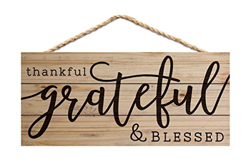 Thankful Grateful Blessed 10 x 4.5 Inch Pine Wood Decorative Hanging Sign