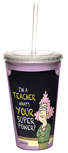 Tree-Free Greetings 16-Ounce Double-Walled Cool Cup with Reusable Straw, Aunty Acid Super Power Teacher (CC98426)