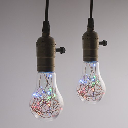 DORESshop A19 Vintage Edison Bulb, Multi-color Flashing Decorative String Light Bulb, E26 Base Spiral Antique LED Lights, Fireworks Vintage Bulbs for Christmas Festival, 2Pack