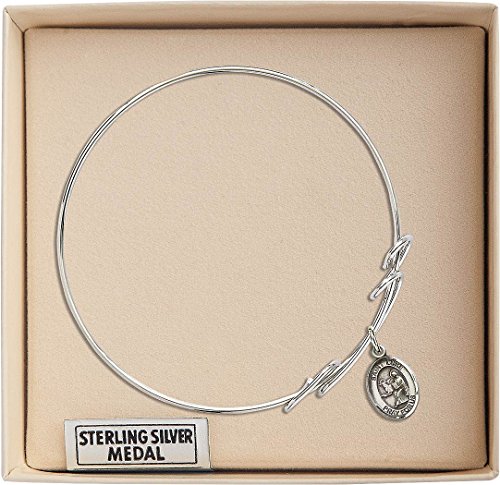 -. Feature : 7 1/2 inch Round Double Loop Bangle Bracelet with a St. Luke the Apostle charm. / St. Luke the Apostle / 100% Handmade in the United States, Lifetime No-Tarnish Guarantee / Sterling Silver Medal / Brass bangle with nickel-free thick rhodium plating