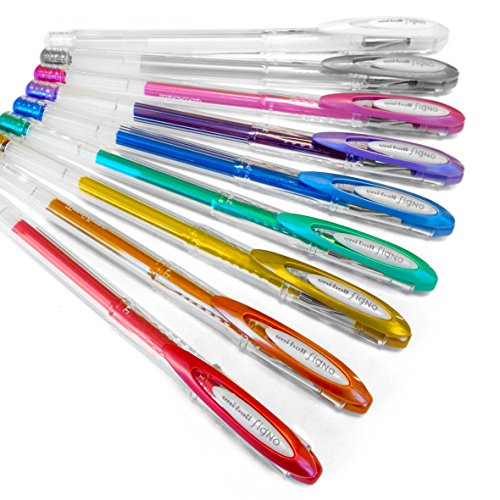-. Title : Uni-Ball Signo - UM-120NM - Set of 9 Assorted Metallic & Pastel Gel Ink Rollerball Pens