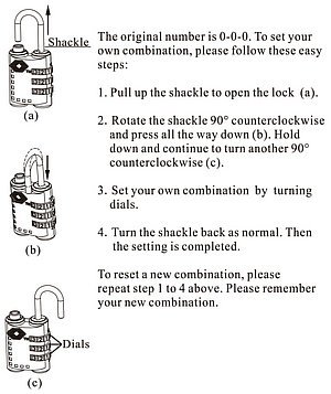 Binding : Apparel Product Description This 3-Dial Combination Lock is TSA approved! No need to have unlocked baggage while traveling anymore. The red-and-white TSA logo on the lock notifies screeners that they can unlock and relock your baggage without having to break the lock open. Also, the lock comes in various colors for easy baggage identification. And with set-your-own combination convenience, you don't have to worry about losing the key while you travel. The Transportation Security Administration (TSA) now suggests you lock your checked baggage with TSA-accepted and recognized locks. Travel SentryTM Certified locks are accepted and recognized by the TSA. Look for the Travel SentryTM symbol when shopping for TSA-accepted products. Airline check-in staff are trained to recognize the Travel SentryTM mark, so they understand that baggage with this special mark is permitted to remain locked. The TSA screeners have access to special tools that allow them to open TSA-accepted locks in the event that your bags must be opened for inspection. Airport security professionals no longer need to cut your locks or force your bag open and risk damaging it. They simply open your locks, inspect, and relock your bags, sending them quickly and securely on their way. 0