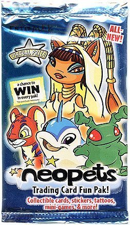 -. Binding : Toy -. Brand : Neopets -. EAN : 0879492000238 -. Feature : 1 Sweepstakes Card in every Pack! / 1 Virtual P.R.Ize! / Also includes: 1 Standee or Sticker Card, 1 Species Card, 1 Mini-Game or Trivia Card, 1 Tattoo Card, 1 Misc Trading Card. -. IsAdultProduct : 0 -. Label : Enter Play -. Manufacturer : Enter Play -. MPN : T2-65VL-56Q8 -. PartNumber : T2-65VL-56Q8 -. ProductGroup : Toy -. ProductTypeName : TOYS_AND_GAMES -. Publisher : Enter Play -. Studio : Enter Play -. Title : Neopets Trading Card Fun Pak -. UPC : 879492000238