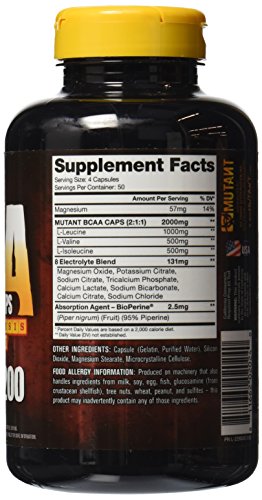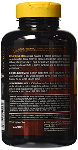 200MG OF BCAAS | The Mutant BCAA 200 Capsule Supplement is a more convenient delivery method of getting your BCAAs. Keep a bottle in your gym bag and you'll never have to worry about missing a dose, mixing powder, or leaving them at home.