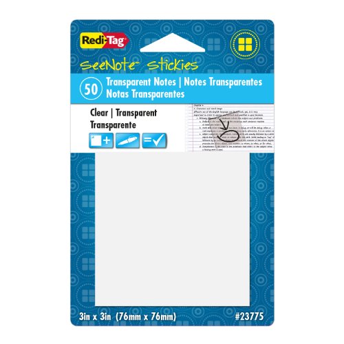 Redi-Tag SeeNote Stickies Transparent Sticky Notes, 50-Pack, 3 x 3 Inches, Clear (23775)