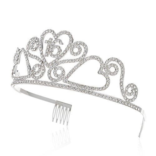 -. Title : SWEETV Rhinestone Tiara Birthday Crown P.R.Incess Party Hat Hair Accessories 15/16/18/21/30/40/50/60/70th Birthday Gift