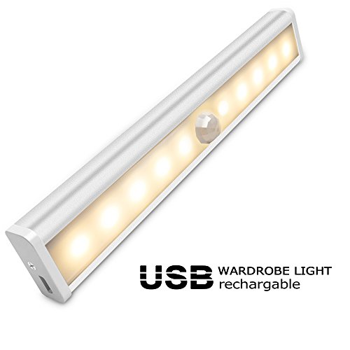 Bright Closet Light,GREEN JUNGLE 10-LED Wireless 3 Modes Motion Sensor Eye-Care Night Light for Cabinet/Stairs/Stick-on Anywhere USB Port