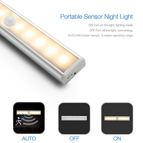 - 【Automatic Sensing】: The light will light up when you get within 10ft of it and will light off with 15s delay after you walk out of its sensing range. 10 pcs warm white LED beads, energy-saving and environment friendly.
