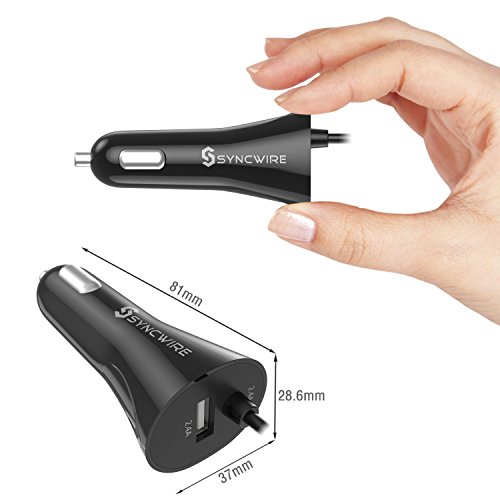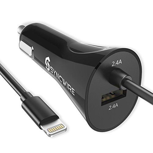 iPhone USB Car Charger Syncwire - 4.8A/24W Car Charger Adapter with Retractable Lightning Cable [Apple MFi Certified] for iPhone X/8/8 plus/7/7 Plus/6S, iPad, Samsung Galaxy S8+ S8 S7 & More - Black