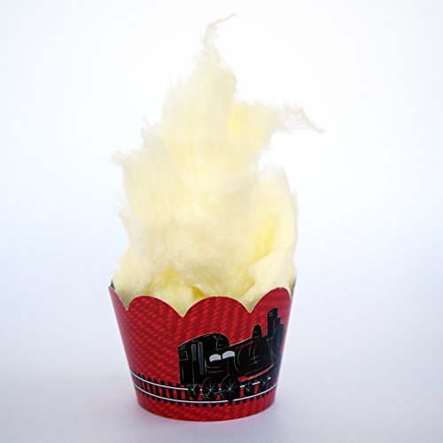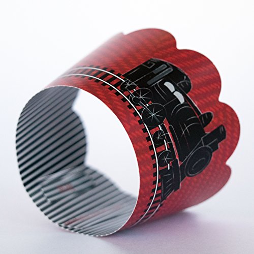 - MADE IN U.S.A.- High quality heavy-weight recyclable paper, aqueous coated, keeps your railroad crossing cupcake tower or expedition dessert display looking great for hours. Grease resistant coating means no need to spend extra on greaseproof baking liners. Create a finished look on your pastries, muffins or cupcakes in seconds. 2 designs on each reversible wrapper make creating a train route cupcake display a piece of cake! Party ideas for these rail car excursion party wrappers are endless!